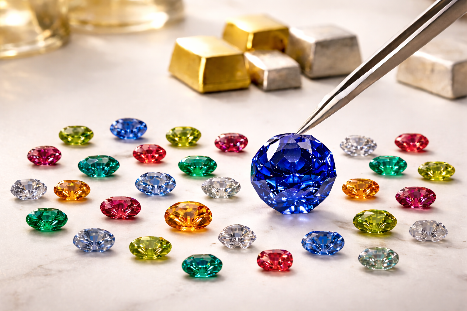 For lab-grown colored gemstones, Dellyrica selects stones that meet a strong 5A color standard — vivid, saturated, clean, and lively under real light.